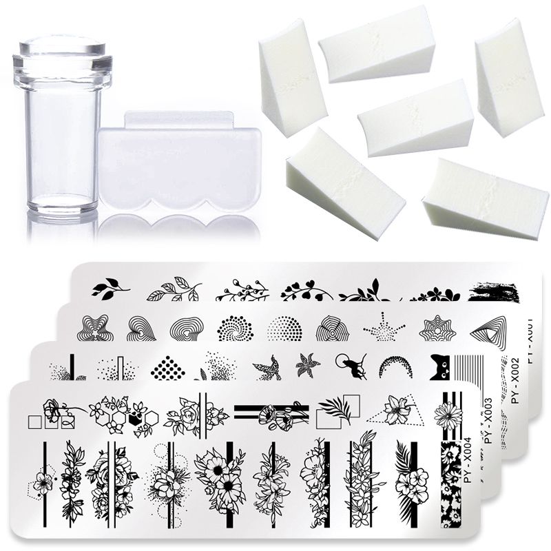 Amazon Com Nail Art Stamping Plate Kit Flower Geometric Image Stamping Template Stamper Scraper Rhinestones Decorations Mandala Dotting Pen Nails Striping Tape Manicure Diy Beauty Personal Care